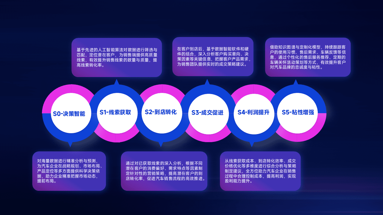 通过拓宽潜在客户来源、、优化线索分配并提高到店转化率,,以增强销售效率。。。同时,,利用线索数据不断优化分析模型,,,有效提升转化率,,扩大营销影响力。。。。
